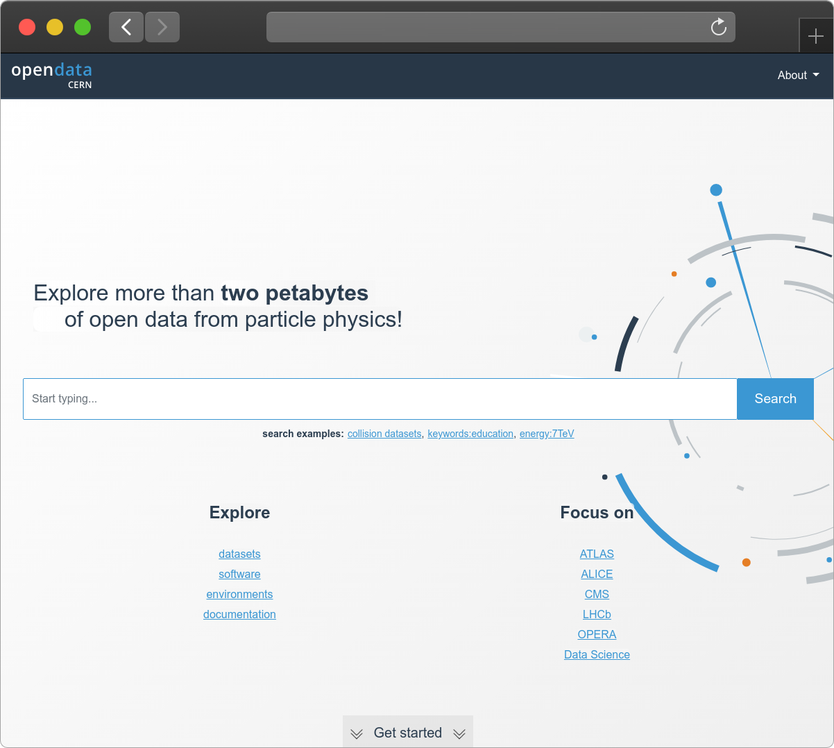 Open Data platform publishing petabytes of CERN physics data from LHC and other experiments.