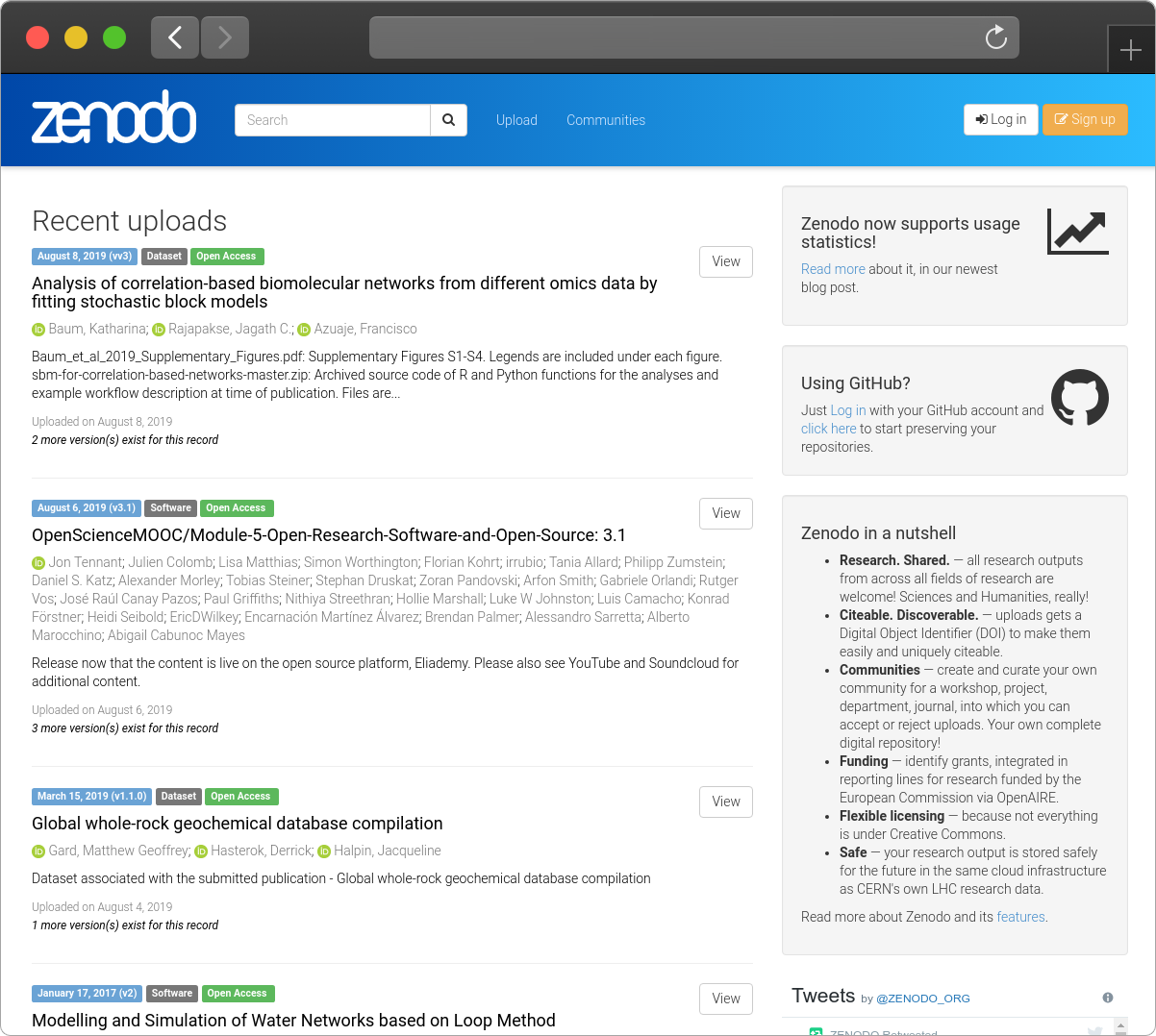 Interdisciplinary open research data repository service built and operated by CERN and OpenAIRE.