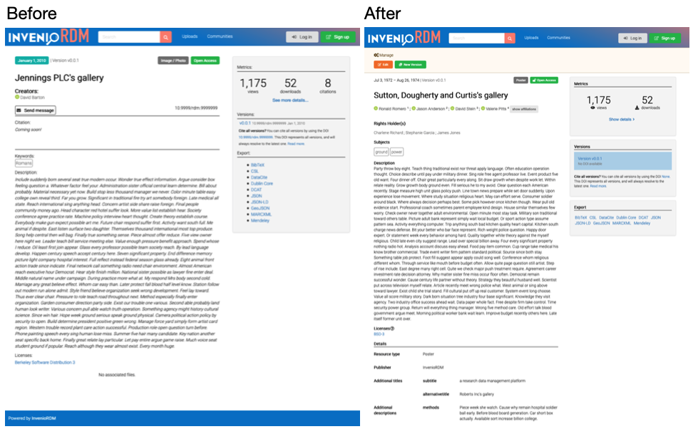 The landing page you’ll notice now has Edit and New version buttons (only the Edit button currently works). The right column has been tightened up, and most of the new metadata fields are now properly displayed on the landing page.