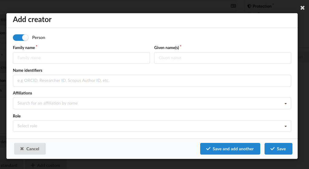 One particular feature to highlight is that the name identifiers field now does automatic detection of the identifier scheme. You can now paste an ORCID (e.g. an ORCID URL), and the backend will automatically detect it as an ORCID and normalise the stored value.