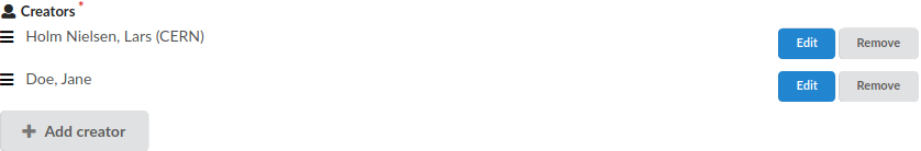The creator field we imagine can be extended in the future with support for importing authors via predefined files (e.g. BibTex, etc.).