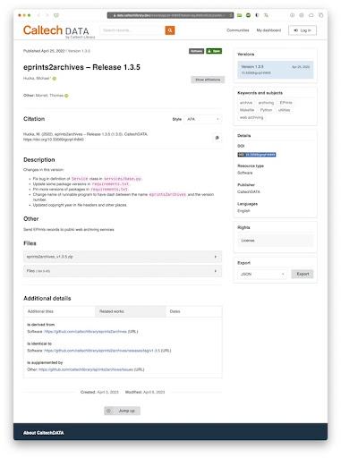 More information about the InvenioRDM GitHub Archiver is available at caltechlibrary.github.io/iga/.
