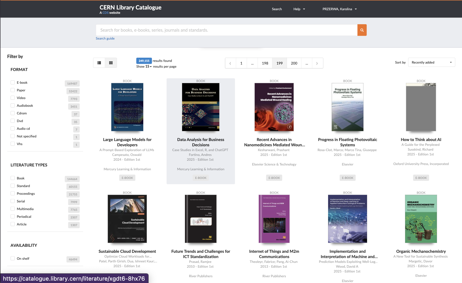 The CERN installation demonstrates how InvenioILS can support large user bases, extensive collections, and demanding operational environments - all while integrating with CERN Institutional repository, based on InvenioRDM.