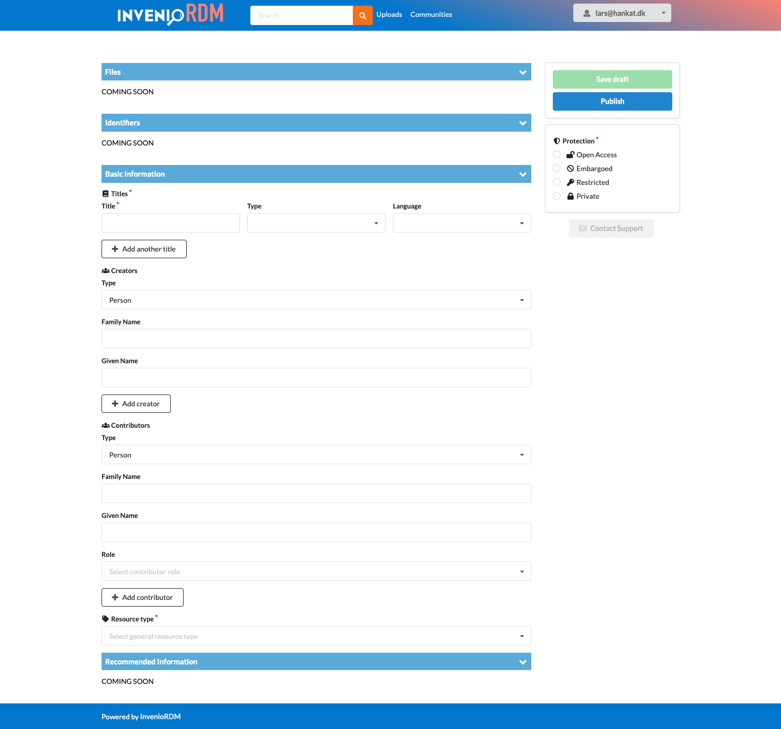 We now have support for drafts, meaning you can now start a deposit, save it, and come back many days later to publish it.