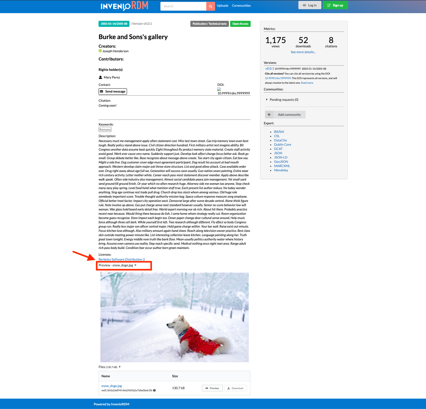 - Invenio-IIIF: IIIF Image API support for thumbnail and zooming on images.