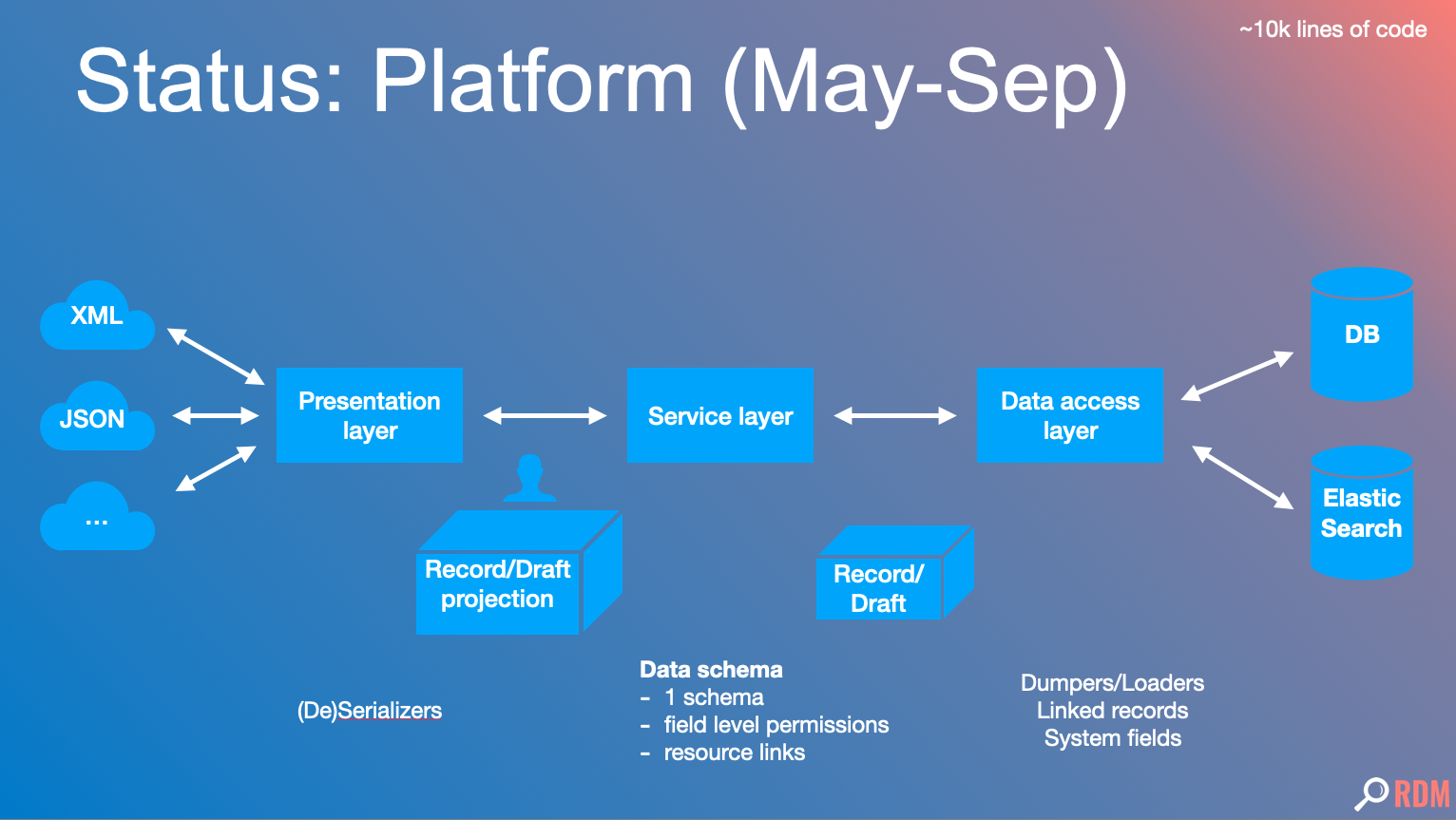 This simple change marks a very big milestone for the backend of InvenioRDM. During the past months we have been revamping the entire data and control flow of the backend. The flow is what is supporting the core of InvenioRDM - submitting, editing and searching for records - and it determines what is possible and what's not possible in InvenioRDM. These changes enable the customizations needed by partners including customizations to permissions, publishing workflows, metadata fields, indexing and serializations just to name a few.